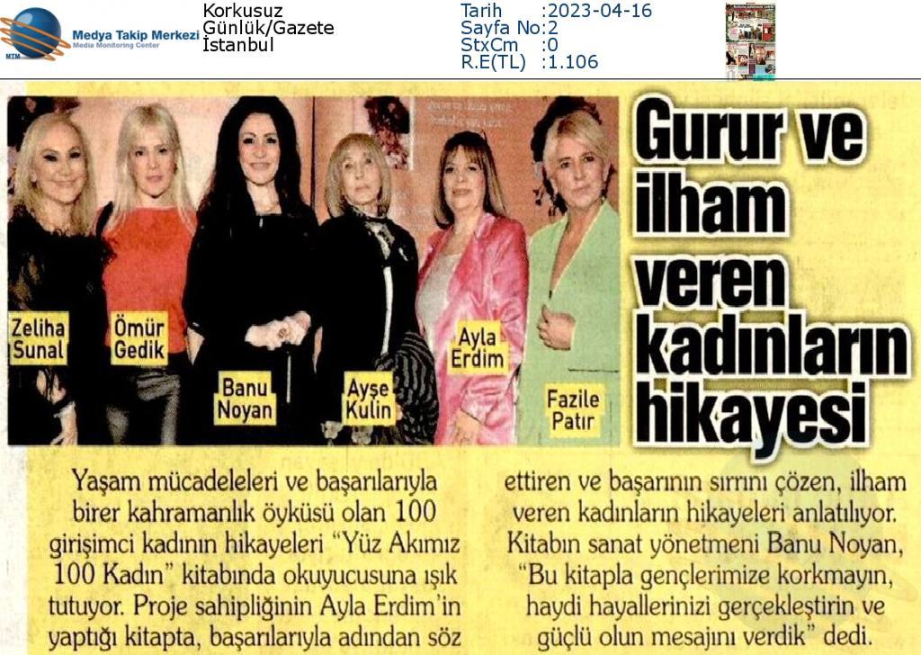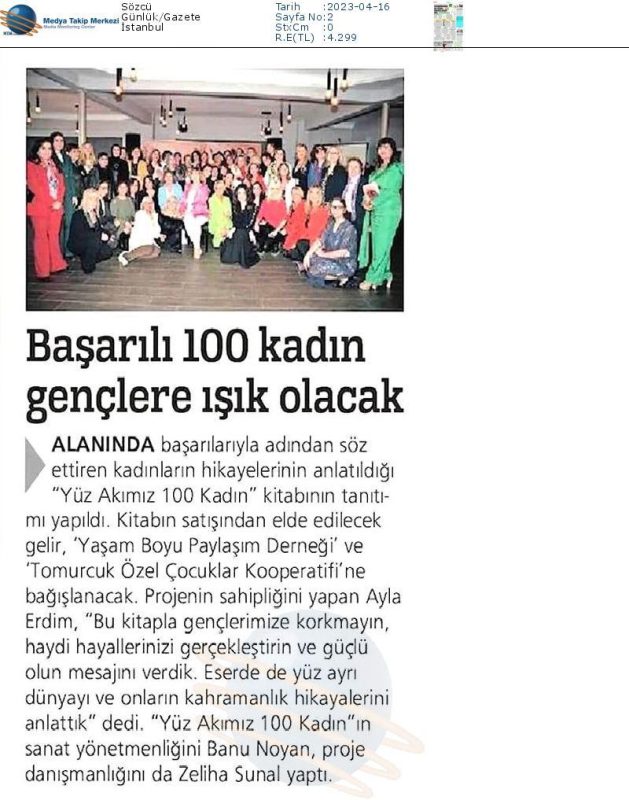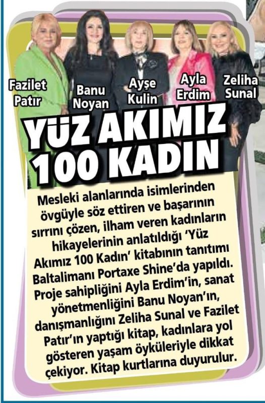İkinci YÜZ AKIMIZ 100 KADIN kitabı sizlerin öykülerini bekliyor. Günümüz ve geleceğimizle ışık tutarak yaşam öykülerini yayına hazırlıkta yolda sizlerin başarı öykülerini yayınlamak üzere sabırsızlanıyoruz.